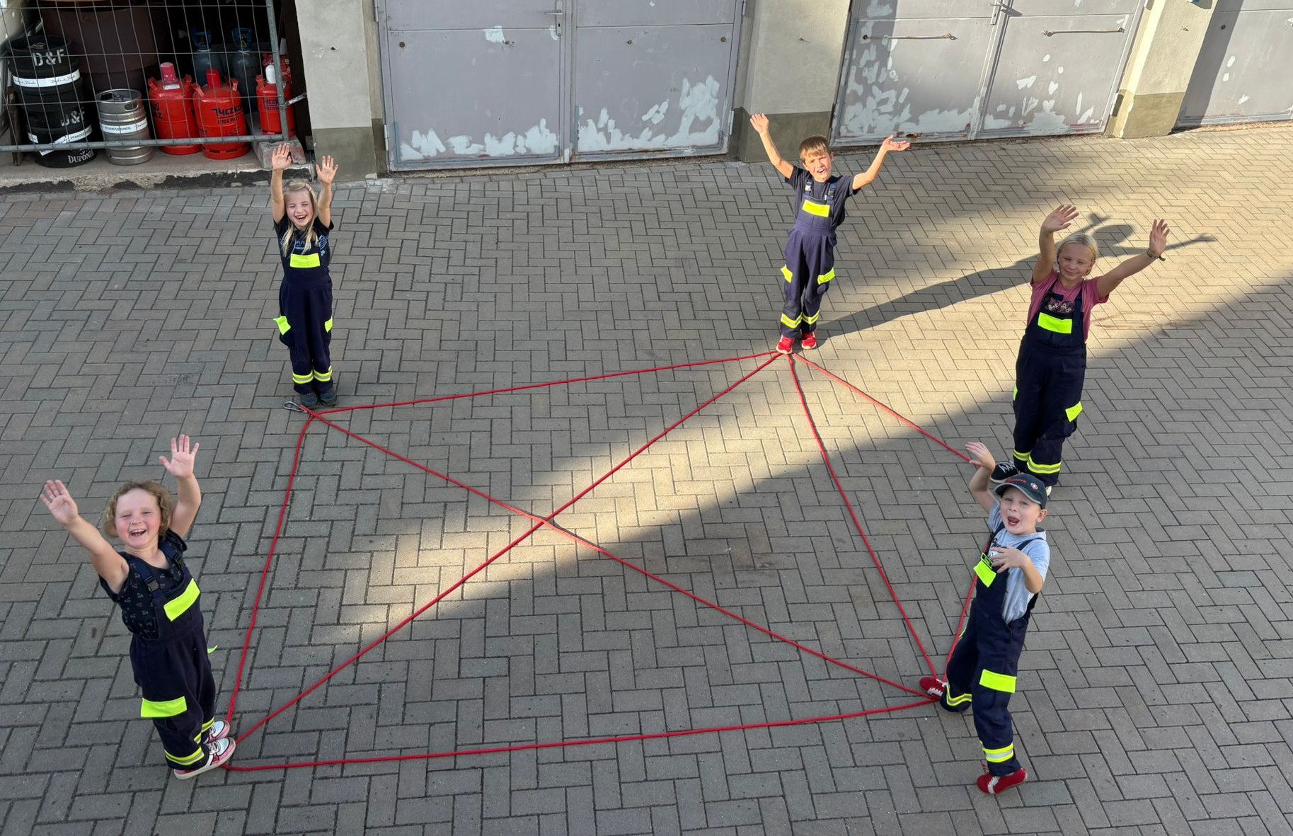 Für unsere Dienstnachmittage heißt das konkret, dass wir feuerwehrtechnische Themen in Theorie und Praxis immer verbinden mit Team-Spielen und sportlichen Elementen, um dem natürlichen Bewegungsdrang der Kinder gerecht zu werden.
